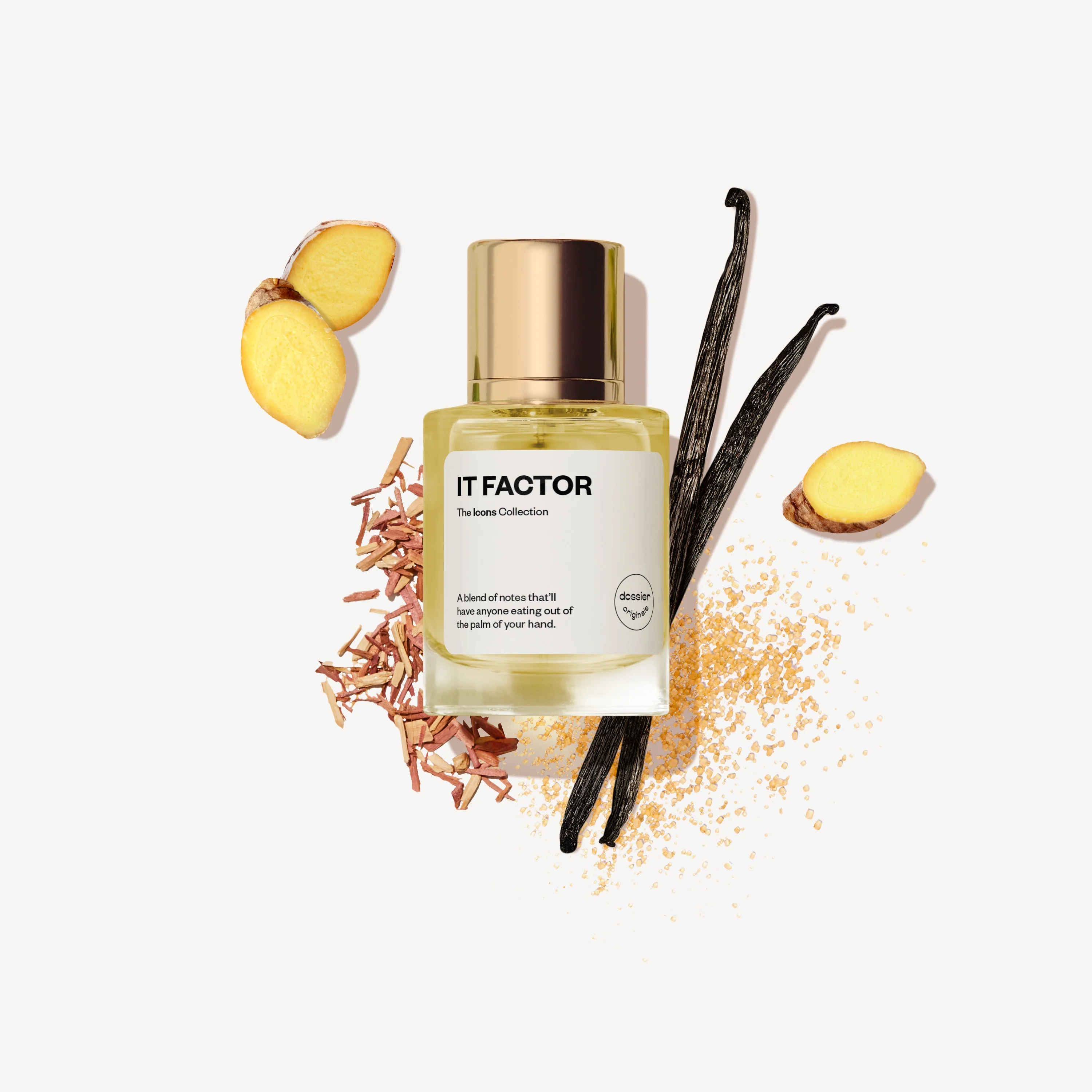 Warm, sensual, and delectable. It Factor is the French expression “oh là là” in a bottle. Enjoy a comforting, invigorating, and spicy blend upon first sniff, thanks to the top notes of ginger and cardamom. The scent then opens up and embraces its sultry side with smoky incense, silky musk, and underlying violet notes at the heart. Once settled on the skin, the gourmand and creamy facets of the fragrance come out to play. Relish in a lingering blend of delectable brown sugar, sandalwood, vanilla extract, and tonka bean at the base. Captivating, addictive, and utterly intoxicating. This scent will have others saying, “Call me?” all day.